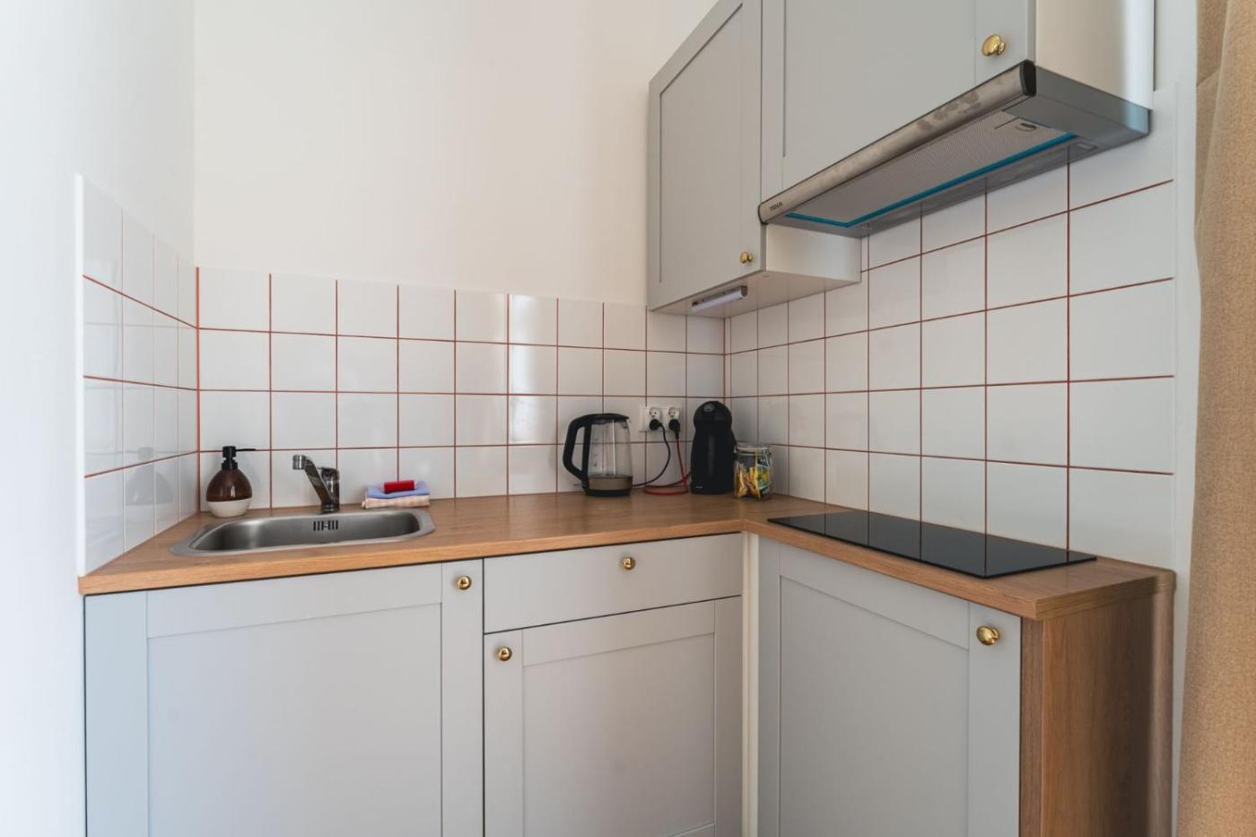 Studio. The studio offers a coffee machine, a wardrobe, as well as a private bathroom boasting a shower and a hairdryer. Guests can make meals in the fully equipped kitchenette that has a stovetop, a refrigerator and kitchenware. The studio features tiled floors and features a sofa, heating and garden views. The unit has 1 bed. Studio - 2 osobowy. Powierzchnia pokoju ok.: 19 mkw.
