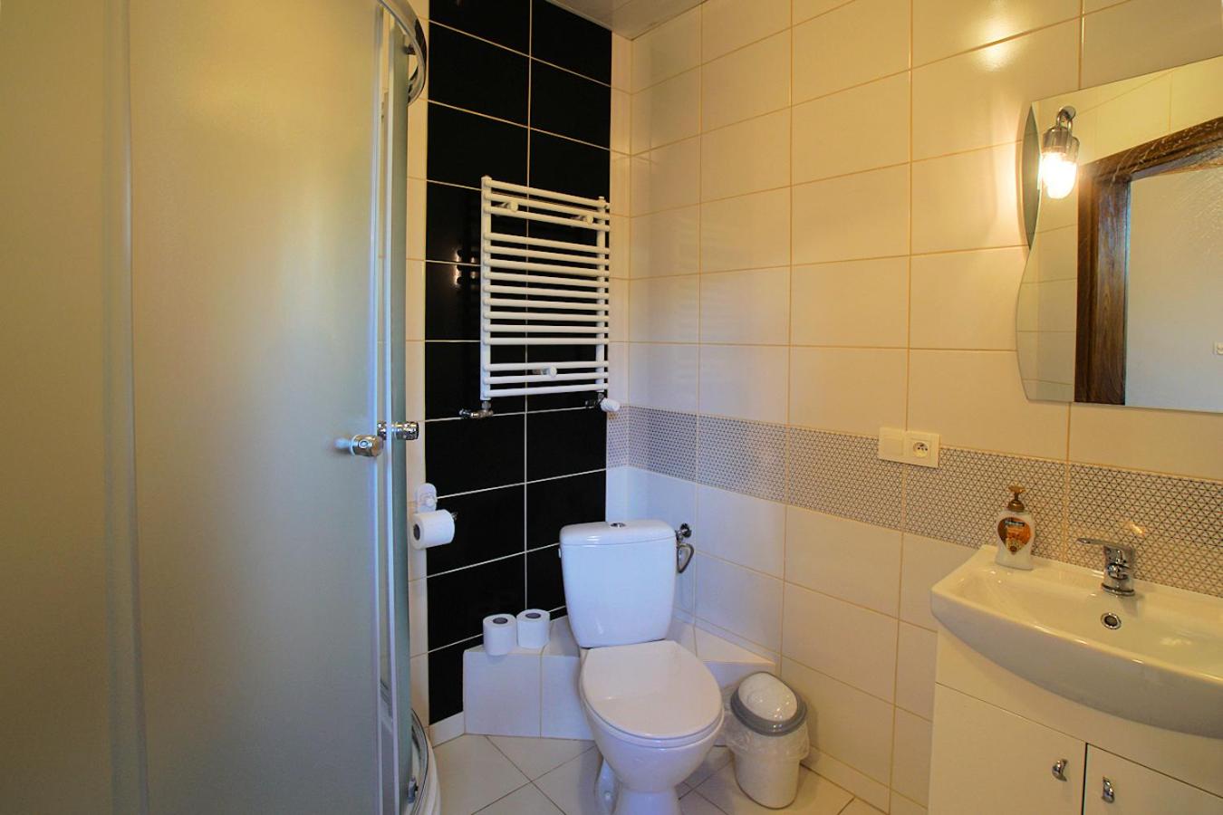 Pokój Czteroosobowy z łazienką. Guests will find a stovetop, a refrigerator, kitchenware and an electric kettle in the kitchenette. The quadruple room also comes with a barbecue. This quadruple room is comprised of a flat-screen TV with satellite channels, a private bathroom as well as a terrace with garden views. The unit has 2 beds. Pokój Czteroosobowy - 4 osobowy.