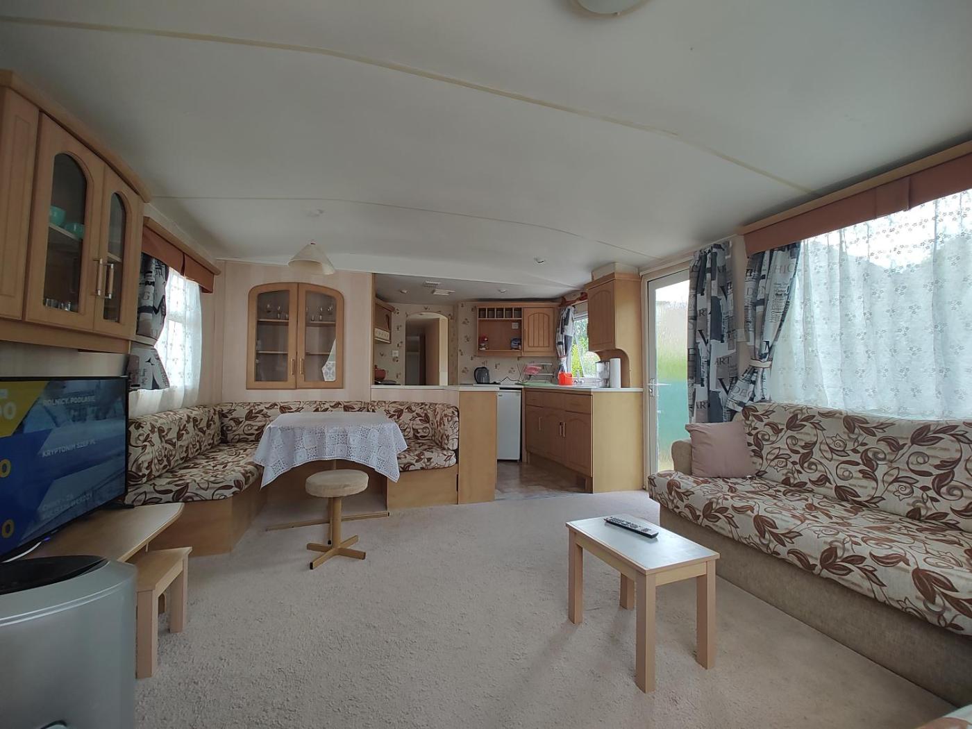 Domek holenderski. Boasting a private entrance, this mobile home comes with 1 living room, 3 separate bedrooms and 1 bathroom with a shower and a hairdryer. Guests will find a stovetop, a refrigerator and kitchenware in the kitchen. The mobile home also includes a barbecue. Featuring a terrace with garden views, this mobile home also features a tea and coffee maker and a flat-screen TV. The unit has 4 beds. Domek holenderski - 6 osobowy. Powierzchnia pokoju ok.: 44 mkw.